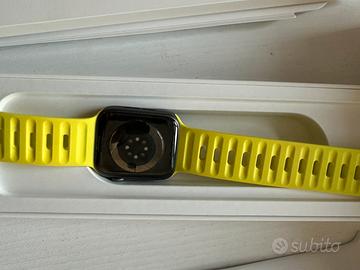 Vendo Apple Watch Series 6 (GPS), cassa 44 mm alluminio + 2 cinturini in silicone, 1 in maglia milanese originali Apple e 1 cinturino giallo fluo non originale.