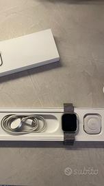 Vendo Apple Watch Series 7 (modello GPS, cassa da 41mm) in colorazione Argento/Starlight. L'orologio è completo di tutto il corredo originale visibile in foto.