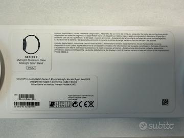 Apple Watch Series 7 in Midnight color, 41mm size. - Midnight aluminum case. - Digital Crown with haptic feedback. - Always-On Retina display. Perfettamente funzionante in ogni sua parte, ci sono piccoli dei segni sul display dovuti all’utilizzo. In aggiunta regalo caricatore USB portatile