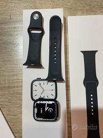 Vendo Apple Watch Series 7 da 41 mm, cassa in alluminio color Mezzanotte (Midnight), per passaggio ad altro smartphone e cambio di ecosistema. Il dispositivo è sempre stato trattato con cura ed è perfettamente funzionante in ogni sua funzione. Trattandosi del Series 7, beneficia del display con cornici sottilissime e della ricarica rapida, caratteristiche che lo rendono ancora attualissimo e molto simile ai modelli più recenti. Stato del prodotto: Estetica: Usato ma in ottime condizioni. Cassa e vetro ben conservati (vedi foto della confezione originale). Funzionamento: 100% operativo. Tutti i sensori (ECG, Ossigeno nel sangue, Battito) e il display Always-on funzionano senza alcun problema. Cinturino: Sport Band Mezzanotte originale inclusa, in buono stato. Informazioni sulla Batteria: Per massima trasparenza verso l'acquirente, segnalo che la capacità massima della batteria è al 72%. Nonostante questo dato, l'orologio è stato utilizzato quotidianamente arrivando sempre a fine giornata con un uso standard (notifiche, passi, orario). Il prezzo di vendita è già stato adeguato per riflettere lo stato della batteria. Cosa riceverai: Cassa Apple Watch Series 7 41mm Midnight. Cinturino originale Sport Band Mezzanotte. Confezione originale completa (come da foto). Cavo di ricarica originale incluso. Consegna e Spedizione: Spedizione: Disponibile e gestita con cura. Scambio a mano: Disponibile in zona per visionare il prodotto dal vivo. Info extra: Disponibile per info e per inviare ulteriori foto o video del Watch in funzione su richiesta. Visto il cambio di ecosistema, non sono interessato a scambi con altri smartwatch Apple. Massima serietà, no perditempo.