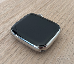 Apple Watch Series 7 nella versione da 45 mm con cassa in acciaio inossidabile. Il dispositivo è in condizioni pari al nuovo, senza alcun segno di usura visibile, graffi o difetti. È stato utilizzato con estrema cura e pulito regolarmente.