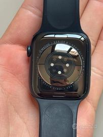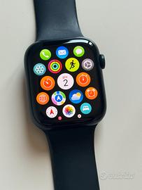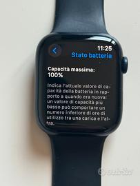 Vendo Apple Watch Series 8, 45 mm, modello GPS, colorazione nera. L’Apple Watch è in perfette condizioni, è stato utilizzato molto poco e funziona perfettamente, senza alcun problema. Lo schermo presenta piccoli segnetti, che però con l’utilizzo e con la protezione per lo schermo che fornisco non si notano. Voto dello schermo: 9 su 10. Stato della batteria: 100%. Compreso nell’acquisto: • Cinturino nero non originale • Cavo di ricarica originale • Protezione per lo schermo nuova Per qualsiasi domanda mi si può contattare. Disponibili altri Apple Watch, cinturini e altri prodotti Apple sul mio profilo.