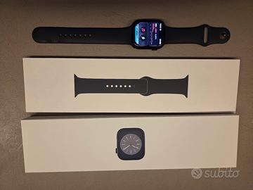 Vendo Apple Watch Series 8 con cassa da 45mm per passaggio a modello superiore. L'orologio è stato tenuto con estrema cura, il display è in ottime condizioni e il software è aggiornato all'ultima versione.