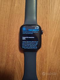 Vendo Apple Watch Series 8 con GPS e Cellular, dimensione 45 mm, in alluminio colore Midnight Blue.