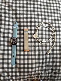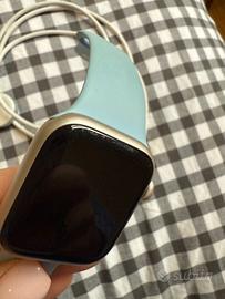 Ricevuto in regalo nel marzo 2023. Ho ricevuta fiscale se servisse. Lo vendo perché effettivamente non lo porto. Usato poco, alcuni mesi. Alcuni grafi li ha ma molto lievi e poco visibili. Colore galassia con 2 cinturini come in foto. Cavo ricarica e scatole disponibili