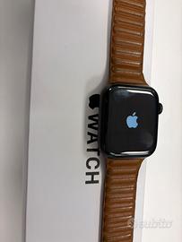 Vendo, in buone condizioni, apple watch con cassa in titanio. Vetro perfetto senza graffi e sensori in ottimo stato. Stato Batteria al 65%. Dura una intera giornata. Acquistato in origine con cinturino magnetico in pelle e vendo con 2 cinturini in metallo (non apple).