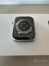 Vendo Apple Watch serie 8 45mm, in perfette condizioni, vendo per inutilizzo, é sempre stato pellicolato con sistema outfitters con cambio pellicole a vita (allego scontrino), schermo mai toccato con le dita, non presenta nessun segno di righe o ammaccature, tutto originale, regalo ulteriori pellicole proteggi schermo.
