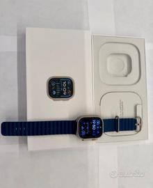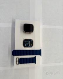 GPS+ Cellular in titanio con cinturino ocean blu completo di scatola e cavo di ricarica.