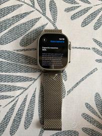 Bellissimo apple watch ultra titanio naturale con cinturino milanese loop (200€ solo il cinturino). Batteria in perfetto stato come da foto.