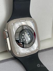 Apple Watch Ultra 49mm in titanio con connettività GPS + Cellular, completo di scatola originale e cinturino Casetify nero in silicone (non Apple).