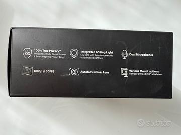Webcam con risoluzione Full HD di 1920 x 1080 pixel, angolo di visione di 90° e funzione autofocus offre un'immagine nitida e colori realistici, mentre una coppia di Imicrofoni garantiscono una trasmissione audio di qualità. La luce anulare con intensità regolabile riduce le ombre sul viso e garantisce un'immagine di alta qualità anche in un ambiente buio. Il pratico supporto ribaltabile consente un facile posizionamento della fotocamera su un monitor, una superficie piana, ma anche il fissaggio a un treppiede utilizzando una filettatura da 1/4". Per mantenere la massima privacy, è presente una copertura di sicurezzamagnetica e un interruttore per disattivare il microfono. Per il collegamento al computer viene utilizzato un connettore USB 3.0 o una coppia di connettori USB 2.0, Preferita consegna a mano, Nuovo mai usato ancora sigillato, Grazie