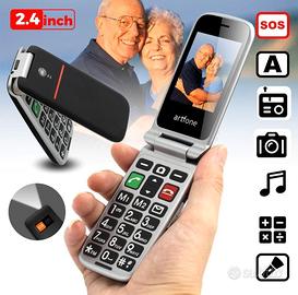 artfone CF241A Nero - Telefono Cellulare per Anziani丨GSM Flip Telefoni Cellulari con Tasti Grandi丨2.4" Display丨Funzione di orario丨Funzione SOS丨Volume Alto丨Doppia SIM丨Batteria da 1300 mAh丨Torcia丨FM
