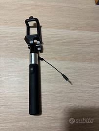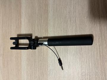 Asta telescopica per selfie con possibilita’ di scatto foto tramite tasto posto sul manico e collegamento allo smartphone tramite jack auricolari, molto comodo.