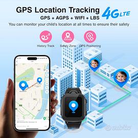 AstraMinds Orologio Smartwatch Bambini, 4G con GPS e IP67 impermeabile per telefonare e fornito di WiFi, Videochiamata, SOS, Sveglia... (Nero)