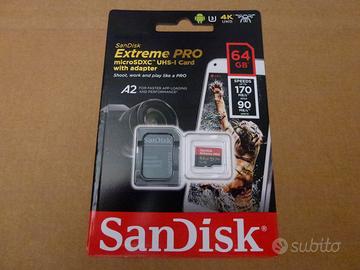 TUTTI PREZZI NON TRATTABILI, PERTANTO NON CHIEDETEMI SCONTI: SanDisk Extreme micro SD/HC 32 GB card with extreme capture, transfer and app speeds, SPEED UP TO 100 MB/S 667X A1 FOR FASTER MOBILE APP PERFORMANCE, 4K UHD 3 ACTION CAMS, INFINITY WARRANTY, modello SDSQXAF-032G-GN6MA codice EAN 619659155827 acquistata a 25 euro, svendo a 16 euro, SanDisk Extreme micro SD/XC 64 GB card with extreme capture, transfer and app speeds, SPEED UP TO 160 MB/S READ 60 MB/S WRITE, A2 FOR FASTER APP LOADING AND PERFORMANCE, 4K UHD ACTION CAMS, INFINITY WARRANTY, modello SDSQXA2-064G-GN6MA codice EAN 619659169770 acquistata a 55 euro, svendo a 25 euro, SanDisk Extreme micro SD/XC 128 GB card with estreme capture, transfer and app speeds, SPEED UP TO 160 MB/S READ 90 MB/S WRITE, A2 FOR FASTER APP LOADING AND PERFORMANCE, ANDROID 4K UHD DRONI ACTION CAMS, INFINITY WARRANTY, modello SDSQXA1-128G-GN6MA