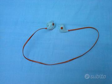 Le cuffie sono state usate poco, in ottime condizioni, perfettamente funzionanti, unico difetto si è staccata la plastica di copertura dell'inserimento del carica batteria. Inclusi cavo e accessori di 3 misure per fissare gli auricolari. Le cuffie sono ideate per l'utilizzo mentre si pratica sport. Il filo è lungo cm 56.