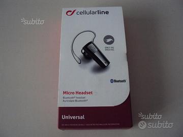 Vendo auricolari per cellulare Cellularline, nuovo, mai usato, bluetooth, v.3.0classe II, peso 6 g (betteria inclusa), fissaggio over-the-ear o in-ear, tasto di risposta multifunzione, compatibile VoIP.