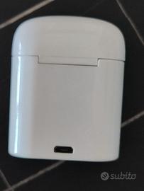 Auricolari Bluetooth con microfono nella loro custodia che funziona anche da caricabatterie degli auricolari. La custodia si ricarica a sua volta tramite cavo micro-USB (non compreso).