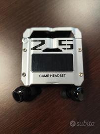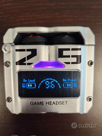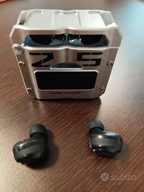 Vendo auricolari bluetooth Gaming con funzione ANC soppressione del rumore, le cuffie sono nuove mai usate, suono limpido bassi potenti, case con display per verificare l'autonomia della batteria, il case funziona anche da Power Bank per ricaricare cellulare cuffie, il tutto corredato di cavo per la ricarica.