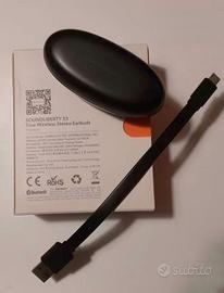 Auricolari Bluetooth Originali colore nero, completi di scatola, astuccio che é anche la base di ricarica, confezione originale e istruzioni. SONO NUOVI, MAI UTILIZZATI COME SI VEDE IN FOTO con led accesi mentre é in fase di ricarica (per inserire le foto nell'annuncio) e cavetto USB tutto come in foto, mi sono stati regalati ma poiché ho già i Buds FE, li vendo per inutilizzo.