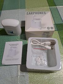 Auricolari Earphones 6777 bluetooth 5.0 colore bianco, nuovo mai usato, Qualità del Suono HD, 5 ore di Durata Della Batteria, Impermeabile IPX4, Modalità Mono/Stereo, Modalità Gioco, Chiamata Chiara,comprensivo di manuale di istruzioni,cavetto e 4 cuffiette di gomma.Ritiro a mano 10 euro;
