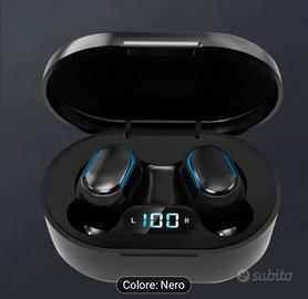 Auricolari Bluetooth TWS wireless colore nero. Prodotto solo testato per verificarne il corretto funzionamento, ma di fatto nuovo e mai utilizzato. Custodia di ricarica con display LED per indicazione livello batteria. Connessione Bluetooth stabile, comandi touch per musica e chiamate, microfono integrato. Design compatto ed ergonomico, buona autonomia grazie alla custodia di ricarica. Compatibili con smartphone Android, iOS e PC. Ideali per musica, chiamate e uso quotidiano. Spedizione rapida.