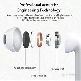 - Design Ergonomico: Le cuffiette Bluetooth Pro6 sono progettate ergonomicamente con tecnologia di flusso d'aria per ridurre la pressione e garantire comfort e sicurezza. Ogni cuffie Bluetooth in ear pesa solo 3,5 grammi e la custodia 32 grammi, per un design leggero e portatile. La custodia di ricarica presenta anche una chiusura magnetica per evitare che le cuffie wireless cadano durante l'attività fisica.