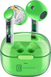 Cellularline FINE. Tipo di prodotto: Auricolare. Tecnologia di connessione: True Wireless Stereo (TWS), Bluetooth. Utilizzo raccomandato: Musica e Chiamate, Colore del prodotto: Verde, Trasparente