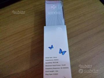 Vendo come da titolo cuffiette auricolari in Ear Midori. Le cuffiette/auricolari hanno il classico attacco jack audio da 3.5mm, hanno un filo lungo 1.2m. Per altre caratteristiche tecniche potete rifarsi alla foto riportante le caratteristiche tecniche.