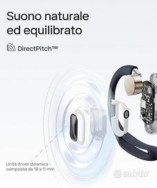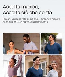 S511BK Design Open-Ear per il massimo comfort: OpenFit Air eredita il design Open-Ear di Shokz, pesa solo 8,7 g e offre un livello maggiore di comfort e aderenza. Puoi trovare il paio che si adatta al tuo stile grazie a 3 opzioni di colore. Gancio auricolare Air e design a doppio smusso: caratterizzato da una lega Ni-Ti flessibile a memoria di forma, ultrasottile da 0,75 mm e da una morbida finitura in silicone, il design del gancio auricolare Air mantiene i tuoi auricolari perfettamente aderenti. Il design ergonomico a doppio smusso offre una vestibilità salda, sicura e stabile. Consapevolezza situazionale: durante attività all'aperto, come corsa, ciclismo e allenamenti, per la tua sicurezza non perdere la consapevolezza ti ciò che ti circonda. Non perdere la concentrazione, ma non rinunciare a conversare. Ascolta musica, podcast e altri contenuti audio senza trascurare la famiglia. Suono come natura vuole: La nostra esclusiva tecnologia DirectPitch mantiene l'audio al suo posto con una minore dispersione sonora. Personalizza ancora di più il tuo audio con l'app Shokz e quattro modalità EQ preimpostate. 28 ore di riproduzione e ricarica rapida: Grazie a un'autonomia massima di 6 ore con una singola ricarica e di 28 ore con la custodia di ricarica, questi auricolari ti permettono di continuare ad ascoltare a lungo le tue playlist. Una ricarica rapida di 10 minuti offre 2 ore extra di ascolto. Indossate correttamente le cuffie e controllate il volume per poter sentire il traffico quando fate sport all’aperto. Andare in bicicletta o guidare con OpenFit Air può distrarre l’attenzione, causare potenziali incidenti e può violare le leggi e i regolamenti applicabili. Utilizzate questo prodotto in conformità alle normative e ai regolamenti locali. › Visualizza altri dettagli prodotto Caratteristiche di sostenibilità