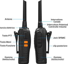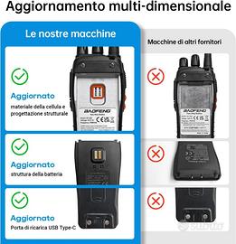 Baofeng Walkie Talkie PMR446 Senza Licenza, Antenna Non Rimovibile, 16 canali Walkie-talkie professionali ricaricabili a lungo raggio con base per caricabatterie USB e auricolari (2 pezzi)