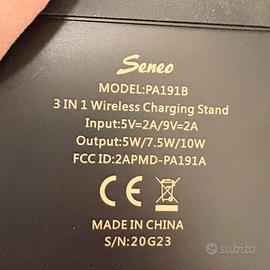 Modulabile, cavo incluso. Adatta per smartphone, airpods, apple watch. In contemporanea o singolo device. Incluso cavo basetta.