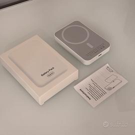 Collegamento MagSafe senza fili, ricarica circa il 30% del sispositivo. Accessorio compatibile non a marchio Apple. Leggerissima. Ottima per emergenze.