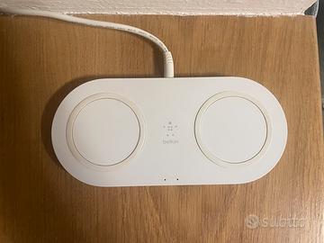 Belkin Doppio caricabatteria wireless (2 tappetini di ricarica wireless da 15 W), ricarica rapidamente 2 dispositivi nello stesso istante, inclusi iPhone, AirPods, Galaxy, Pixel e altri - Bianco