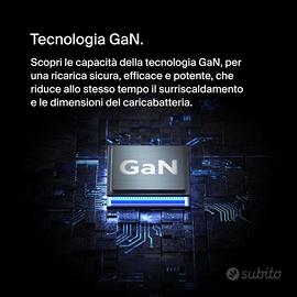 - La tecnologia GaN integrata offre una ricarica sicura, potente ed efficace per il dispositivo, riducendo il surriscaldamento - il tutto in un formato compatto;