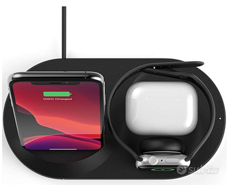 Presenta un pad di ricarica wireless da 7.5 W per il tuo Apple iPhone, un modulo di ricarica magnetico per il tuo Apple Watch e un pad da 5 W per ricaricare in modalità wireless i tuoi AirPods (se la custodia degli AirPods ovviamente è predisposta per la ricarica wireless / MagSafe. Non tutte lo sono)