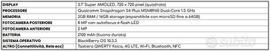 ๐ฑ Vendo BlackBerry Q10, sbloccato, da collezione e in ottime condizioni. ๐ฎ๐๐ ๐ฅ๐๐ , ๐ญ๐ฒ๐๐ ๐ฑ๐ถ ๐บ๐ฒ๐บ๐ผ๐ฟ๐ถ๐ฎ ๐ถ๐ป๐๐ฒ๐ฟ๐ป๐ฎ (espandibile con microSD fino a 64GB), tastiera fisica QWERTY, display touchscreen e schermo AMOLED. Non presenti caricatore, scatola originale e accessori. ๐ Per chi fosse interessato, ๐ต๐ผ ๐ฎ๐ป๐ฐ๐ต๐ฒ ๐๐ป ๐ฎ๐น๐๐ฟ๐ผ ๐๐น๐ฎ๐ฐ๐ธ๐ฏ๐ฒ๐ฟ๐ฟ๐ ๐ฑ๐ถ๐๐ฝ๐ผ๐ป๐ถ๐ฏ๐ถ๐น๐ฒ ๐ฝ๐ฒ๐ฟ ๐น๐ฎ ๐๐ฒ๐ป๐ฑ๐ถ๐๐ฎ ๐ป๐ฒ๐น๐น๐ฒ ๐๐๐ฒ๐๐๐ฒ ๐ฐ๐ผ๐ป๐ฑ๐ถ๐๐ถ๐ผ๐ป๐ถ (completamente funzionante e in ottime condizioni). โ ๐๐ผ๐ป๐ฑ๐ถ๐๐ถ๐ผ๐ป๐ถ: โข Perfettamente funzionante e in ottime condizioni estetiche, minimi segni di usura, praticamente non visibili. โข Sbloccato. โ๏ธ ๐ฆ๐ถ๐๐๐ฒ๐บ๐ฎ ๐ฒ ๐ฎ๐ฝ๐ฝ: โข BlackBerry OS 10.3.3 installato. โข E' ancora possibile installare qualche vecchia app Android (Instagram, Youtube, Telegram, Discord ecc.), ottimo per email, messaggi, browsing ed uso hotspot. โข ๐ช๐ต๐ฎ๐๐๐ฎ๐ฝ๐ฝ: Supportato tramite app WhatsBerry e Novel Messenger 1.0.0.6. Al momento quest'ultima รจ la miglior opzione anche se non ancora abbastanza stabile e l'installazione e utilizzo non sono immediati. โ ๐ก๐ข๐ก ๐๐ก๐๐๐จ๐ฆ๐: โข Caricatore. โข Scatola originale e accessori. โโโโโโโโโโโโโโโโโโโโโ ๐๐ฆ๐ฐ๐ต๐ฒ๐ฑ๐ฎ ๐ง๐ฒ๐ฐ๐ป๐ถ๐ฐ๐ฎ: โข Display: 3.1" Touchscreen Super AMOLED, 720 x 720 pixel (quadrato) โข Processore: Qualcomm Snapdragon S4 Plus MSM8960 Dual-Core 1.5 GHz โข Memoria: 2GB RAM / 16GB storage (espandibile con microSD fino a 64GB) โข Fotocamera Posteriore: 8 MP con autofocus e flash LED โข Fotocamera Anteriore: 2 MP โข Batteria: Rimovibile 2100 mAh (buona durata) โข Sistema Operativo: BlackBerry OS 10.3.3 โข Connettivitร /Altro: Tastiera QWERTY fisica, 4G LTE, Wi-Fi, Bluetooth, NFC โโโโโโโโโโโโโโโโโโโโโ ๐ก Ideale per chi cerca uno smartphone, telefono cellulare BlackBerry (Black Berry) da collezione, con tastiera fisica QWERTY, da usare per telefonate, browsing, Telegram, mail e altro. Ottimo anche come hotspot per chi volesse fare un po' di detox.