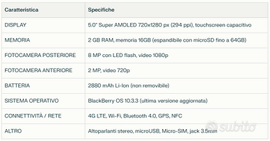 ๐ฅ ๐ฃ๐ฅ๐๐ญ๐ญ๐ข ๐ฃ๐๐ฅ ๐จ๐ก๐๐ง๐' : 3 unitร disponibili, offro sconto importante se interessati al lotto! ๐ฑ Vendo smartphone Blackberry (Black Berry) Z30. Caricatore non incluso (โกOK caricatore Micro-USB generico). ๐ 2GB RAM, 16GB di memoria interna (espandibile con microSD fino a 64GB), 4G LTE e schermo touch AMOLED da 5". ๐ฆ๐ฐ๐ต๐ฒ๐ฑ๐ฎ ๐๐ฒ๐ฐ๐ป๐ถ๐ฐ๐ฎ ๐ถ๐ป ๐ณ๐ผ๐๐ผ. โ ๐๐จ๐ก๐ญ๐๐ข๐ก๐๐ ๐๐ก๐ง๐ข: โข Testati e perfettamente funzionanti โข Sbloccati per tutte le SIM e operatori ๐ ๐๐ข๐ก๐๐๐ญ๐๐ข๐ก๐ ๐๐ฆ๐ง๐๐ง๐๐๐๐: โข Buone condizioni estetiche generali โข Leggeri graffi e segni sui display, maggiormente su quello di destra senza pellicola, praticamente non visibili durante l'utilizzo. โข Alcuni segni di usura presenti sui frame (visibili in foto) โข Back cover nuove, recentemente sostituite, con pellicole pre-applicate (uno smartphone รจ senza pellicola) ๐ ๐๐ง๐ง๐๐ก๐ญ๐๐ข๐ก๐: ๐ก๐ผ๐ป ๐๐ฒ๐ฟ๐ฟ๐ฎ๐ป๐ป๐ผ ๐ฒ๐ณ๐ณ๐ฒ๐๐๐๐ฎ๐๐ถ ๐ฟ๐ฒ๐๐ถ ๐ฝ๐ฒ๐ฟ ๐ถ ๐ฑ๐ถ๐ณ๐ฒ๐๐๐ถ ๐๐ผ๐ฝ๐ฟ๐ฎ ๐ฒ๐น๐ฒ๐ป๐ฐ๐ฎ๐๐ถ, I telefoni anche se perfettamente funzionanti, NON SONO NUOVI, quindi se cercate un telefono nuovo o in condizioni impeccabili guardate altrove. Leggete bene prima di procedere all'acquisto e per qualsiasi dubbio scrivete in chat. Fornisco ulteriori foto su richiesta. โ๏ธ ๐ฆ๐๐ฆ๐ง๐๐ ๐ ๐ฒ ๐๐ฃ๐ฃ: โข BlackBerry OS 10.3.3 โข E' possibile installare app Android leggere (Instagram Lite, Youtube, Telegram X, Spotify, Discord.). Utilizzabile per messaggistica leggera, chiamate, mail, web, media, uso hotspot, telefono secondario ma anche per retrogaming e per chi volesse fare detox (dumbphone). ๐ก.๐. BlackBerry ha terminato ufficialmente il supporto per dispositivi BB10 e relativi servizi a Gennaio 2022 e nonostante vengano ancora sviluppate e aggiornate app dalla community, l'utilizzo di questi dispostivi rimane realisticamente limitato a task base e app leggere.