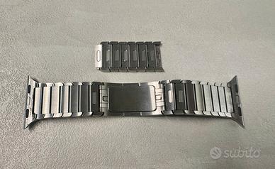 Cinturino/bracciale a maglie Link Bracelet Silver per Apple Watch originale in acciaio, quindi colore argento per un look elegante e professionale dell’orologio. Realizzato in materiale premium: lega di acciaio inossidabile 316L Stainless Steel Apple Original. Possibilità di regolare la lunghezza (stringere/allargare) facilmente tramite le maglie sganciabili singolarmente con pulsante e senza bisogno di strumenti. Chiusura a farfalla, con apertura a pulsanti, discreta ed elegante che segue perfettamente la curvatura del bracciale. Il bracciale viene fornito con la sua confezione e documenti originali, che comprende una elegante case in plastica rigida bianca con interno in panno di velluto grigio. Compatibile con tutti i modelli di Apple Watch con cassa da 38mm, 40mm, 41mm e 42mm. Nuovo costa di listino 349,00€.