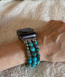 Bracciale per Apple Watch con perline azzurro turchese, stile boho chic. Bello e perfetto, nuovo, mai usato perché troppo largo per me. Misura lunghezza: 15,5 cm senza estenderlo (é elastico).