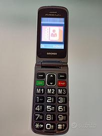 Cellulare Brondi amico flip + usato ma ancora in buone condizioni, doppia sim, alloggio microsd, tasto SOS, 3 numeri memorizzabili, volume alto, batteria un pò fiacca, Base di appoggio per ricarica, caricabatteria, mini torcia, cristalli liquidi danneggiati nella parte superiore dello schermo (vedi foto N°2 e 5) vendo a 25 euro