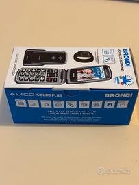Telefono cellulare Brondi per anziani con pulsante emergenza, e braccialetto con pulsante per chiamate d’emergenza.