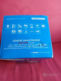 Cellulare BRONDI Modello: "AMICO SMARTPHONE +" SENIOR SMARTPHONE DUAL SIM 3G, GPS. Schermo 5.0" LCD Gestione da remoto per le famiglie. Doppia fotocamera 5Mp+2Mp. Annuncio vocale del numero digitato. Tasto SOS: invia SMS e chiama automaticamente i numeri memorizzati. Altre info visibili dalle foto. Dotazione completa. Peso 150 gr (con batteria).