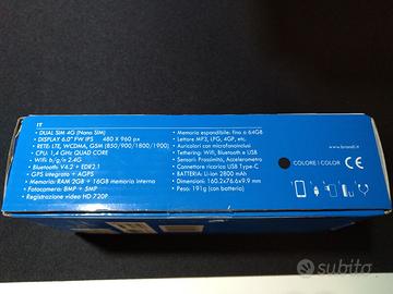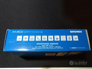 Vendo Brondi Amico Smartphone XL per non utilizzo. Di seguito le specifiche: Brondi Amico Smartphone XL Caratteristiche: Schermo 6 Pollici LCD FW IPS 480 x 960 px Rete LTE, WCDMA, GSM (850 / 900 / 1800 / 1900) Wifi b / g / n 2.4G Bluetooth V 4.2 + EDR 2.1 GPS Integrato + AGPS 4G LTE Connettore USB Reversibile (USB Type C) Controllo Remoto Cover Inclusa Smartphone Android Dual SIM 4G GPS CPU 1.4Ghzz QUAD Core Android 11 Memoria 2 GB RAM + 16 GB Memoria Interna Doppia Fotocamera 8Mp + 5Mp Registrazione Video HD 720P Memoria espoandibile fino a 64 GB Lettore MP3, LPG, 4GP, etc Auricolari con microfono inclusi Tethering WiFi Bluethoot e USB Sensori Prossimità, Accelerometro Batteria Li-ion 2800 mAh Dimensioni 160.2 x 76.6 x 9.9 mm Peso 191 g (con batteria)