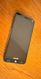 Il telefono dual SIM con sistema Android, grande schermo touch, icone ben visibili, volume alto.