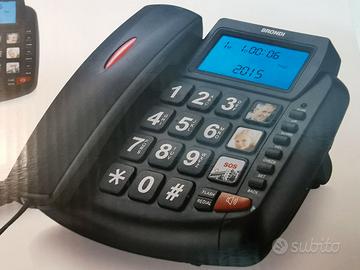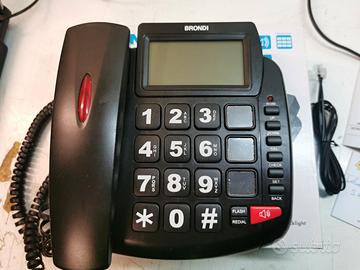 BRONDI BRAVO 90 LCD TELEFONO TASTI GRANDI da tavolo e da muro appeso. FISSO A MURO da PARETE E DA TAVOLO, ADATTO AGLI ANZIANI TASTI GRANDI IN OTTIME CONDIZIONI (vedi foto) BRONDI BRAVO 90 LCD NERO completo di scatola istruzioni e supporto da tavolo e muro. ottimo stato come nuovo usato pochissimo Grandi tasti in rilievo e ben spaziati -GRANDI TASTI PER LETTURA VELOCE E SICURA - Ampio display alfanumerico retroilluminato di facile lettura - Vivavoce per parlare a mani libere - Compatibile con apparecchi acustici - Funzione AUDIO BOOST - Amplifica l’audio in cornetta - Lista ultime 37 chiamate ricevute - Lista ultime 15 chiamate effettuate - 3 memorie dirette tramite tasti dedicati personalizzabili con foto - Indicatore luminoso chiamate in entrata N.B. VERIFICARE CHE I CODICI SIANO GLI STESSI RIPORTATI NELLE DICITURE E NELLE FOTO. LE IMMAGINI SONO PARTE INTEGRANTE DELLA DESCRIZIONE TELEFONO USATO FUNZIONATE IN OTTIMO STATO NON SOGGETTO A GARANZIA DEL PRODUTTORE. OGGETTO IN CONDIZIONI COME DA FOTO. QUELLO CHE VEDETE E' QUELLO CHE ACQUISTATE. POSSIBILITA' DI RITIRO IN ZONA SONO PRESENTI ISTRUZIONI O IMBALLO.