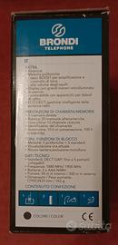 Vendo telefono Brondi Bravo Gold, fisso con cordless grandi tasti con vivavoce. Melodie polifoniche, display con grandi numeri retroilluminato, compatibile con apparecchi per deboli di udito. Consigliato per persone anziane. Con scatola originale ed istruzioni. La base è in perfette condizioni mentre il cordless presenta qualche tasto un po' pigro e a volte bisogna schiacciare più forte. Comunque funziona. Volendo il cordless si trova anche il ricambio. Per le caratteristiche e le innumerevoli prestazioni, leggere in foto. Compreso di alimentatore, cavo di connessione originali e di batterie ricaricabili. Prezzo abbassato per Natale