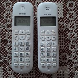 Telefono cordless twin Brondi, bianco, perfettamente funzionanti. La seconda base ha bisogno solo di trovare il contatto per consentire la ricarica dei cordless appoggiati.