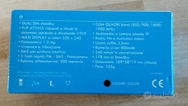 Cellulare Brondi Magnum 3. È il telefono perfetto per chi desidera un dispositivo affidabile, con tasti grandi e uno schermo molto leggibile, senza rinunciare a un design elegante e sottile. Punti di Forza: -Maxi Display: Schermo a colori extra-large da 3 pollici (risoluzione 320 x 240) per una visibilità ottimale di testi e icone. -Flip Attivo: Rispondi alle chiamate semplicemente aprendo lo sportellino e riaggancia chiudendolo. Comodo e sicuro contro le chiamate accidentali in tasca. -Dual SIM: Possibilità di utilizzare due schede SIM contemporaneamente. -Tasti Rapidi Dedicati: Pulsanti fisici per accedere istantaneamente a Radio FM, Fotocamera e Messaggi (SMS). Specifiche Tecniche Complete: -Design: Ultra-compatto e leggero (solo 105g). -Fotocamera: Integrata da 1.3 Megapixel. -Multimedia: Lettore di schede TF (MicroSD) per musica e foto, Radio FM e auricolari inclusi. -Batteria: Lunga durata (Li-ion 800mAh) con circa 3-4 ore di conversazione e oltre una settimana in standby. -Connettività: Bluetooth, uscita cuffie da 3.5mm e rete GSM Quadriband. -Rubrica: Fino a 300 contatti memorizzabili. Contenuto della Confezione: -Cellulare Brondi Magnum 3 (Colore Nero/Silver) -Batteria ricaricabile -Caricabatterie -Auricolari con jack 3.5mm