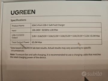 Vendo per inutilizzo carica batterie UGREEN 65w tre uscite usb-c ottimo pressoché nuovo.